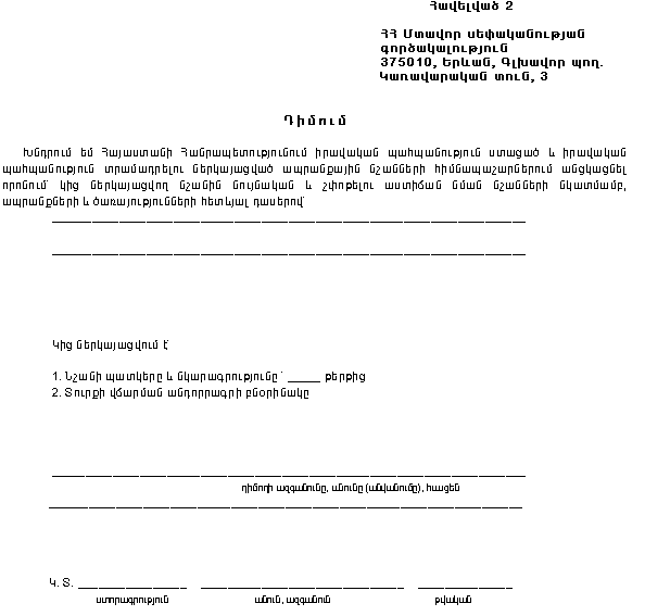 «Պետական տուրքի մասին» Հայաստանի Հանրապետության օրենքի 18-րդ հոդվածի 4-րդ կետի «ժզ» ենթակետին համապատասխան