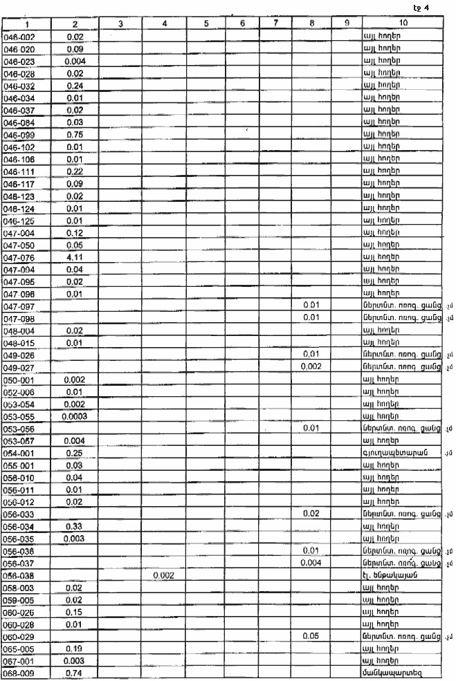 4. Ընդունել ի գիտություն Հայաստանի Հանրապետության Գեղարքունիքի մարզի Ծովակի գյուղական համայնքի հողային ֆոնդի առկայության և բաշխման մասին հաշվետվությունը` 2005 թվականի հունվարի 1-ի դրությամբ` համաձայն NN 8 և 9 հավելվածների: