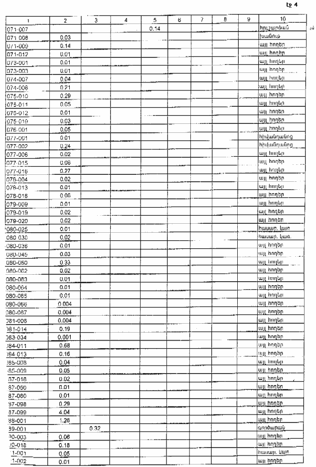 4. Ընդունել ի գիտություն Հայաստանի Հանրապետության Տավուշի մարզի Հաղարծնի գյուղական համայնքի հողային ֆոնդի առկայության և բաշխման մասին հաշվետվությունը՝ 2005 թվականի հունվարի 1-ի դրությամբ՝ համաձայն N 8 հավելվածի: