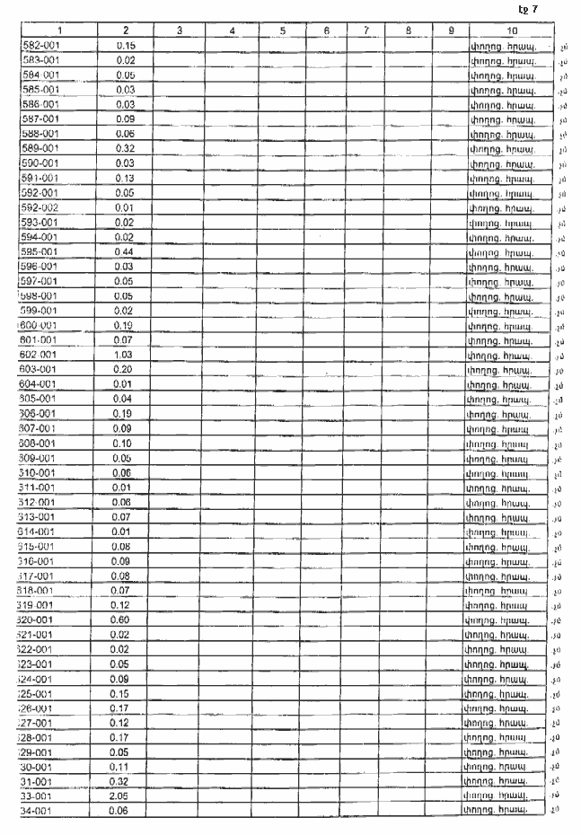 7. Հայաստանի Հանրապետության Տավուշի մարզպետին՝ Հայաստանի Հանրապետության կառավարության 2000 թվականի հոկտեմբերի 23-ի N 656 որոշմամբ սահմանված կարգով՝ սկզբնական հաշվառման տվյալների հիման վրա ապահովել մարզի տարածքում ընթացիկ հաշվառման աշխատանքների իրականացումը: