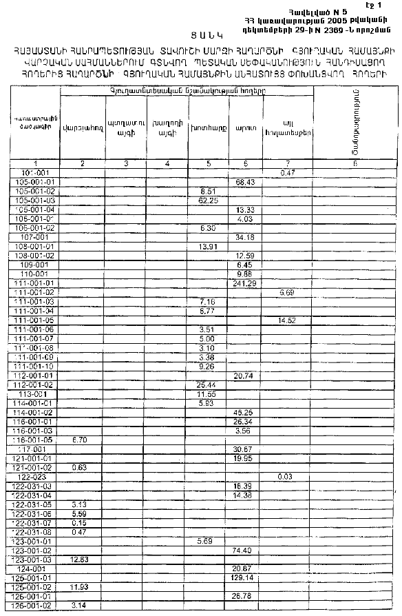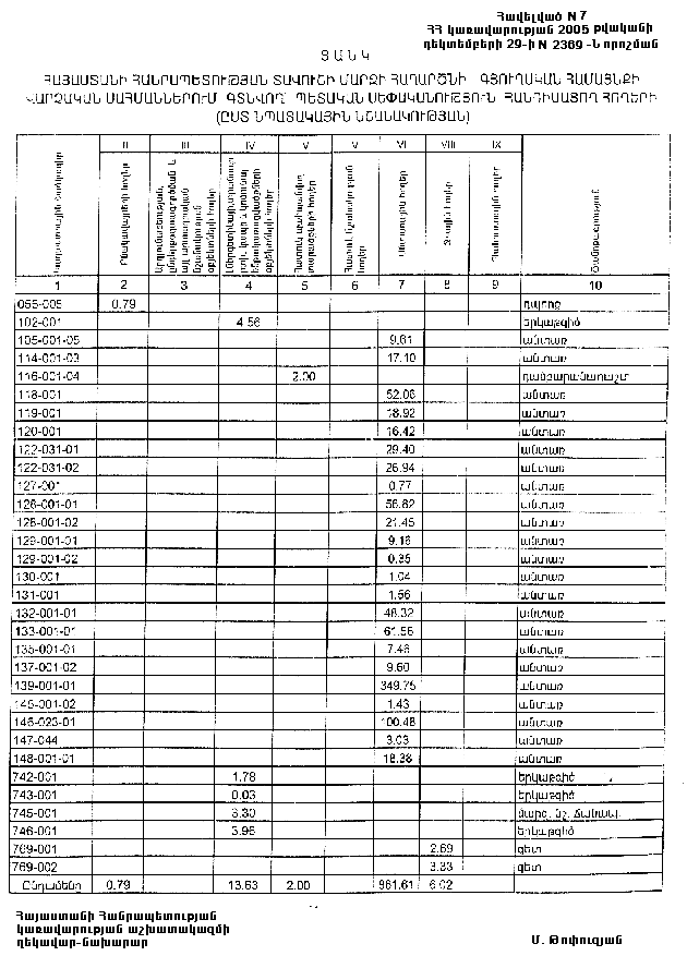 29 դեկտեմբերի 2005 թվականի N 2369-Ն