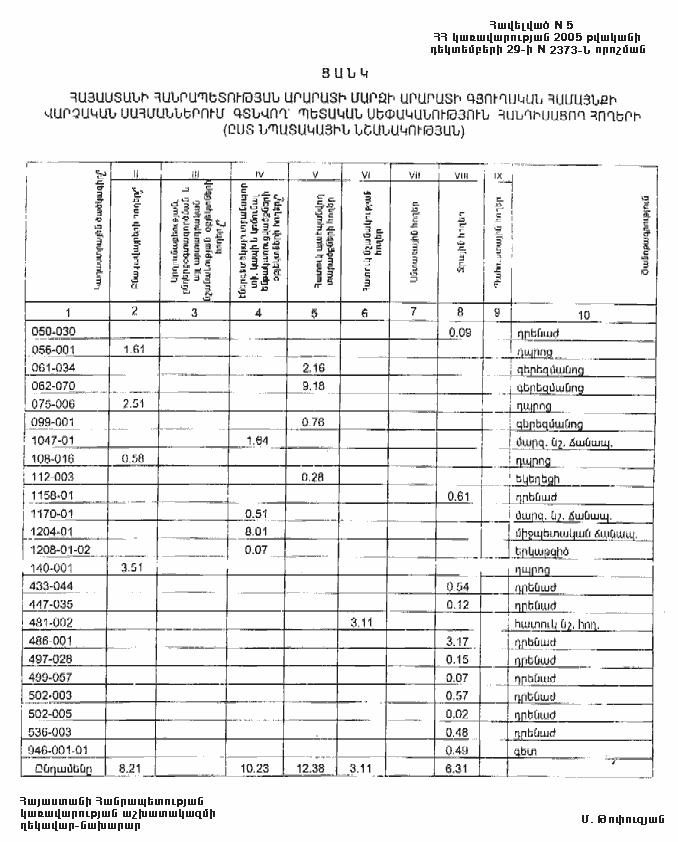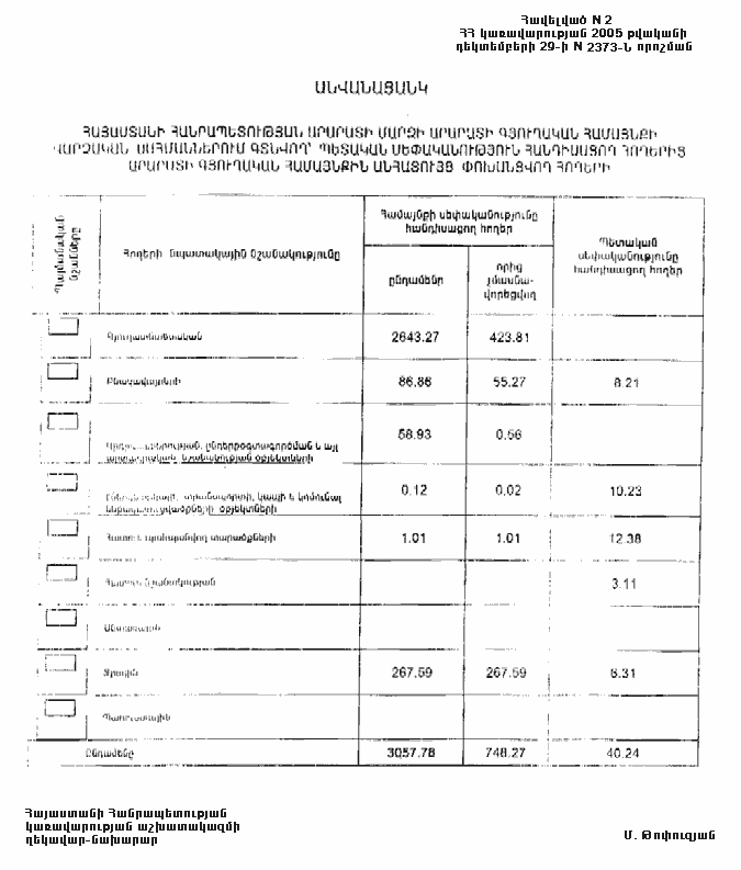 29 դեկտեմբերի 2005 թվականի N 2373-Ն