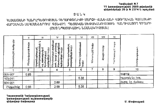 ՀԱՅԱՍՏԱՆԻ ՀԱՆՐԱՊԵՏՈՒԹՅԱՆ ԳԵՂԱՐՔՈՒՆԻՔԻ ՄԱՐԶԻ ՎԱՆԵՎԱՆԻ ԳՅՈՒՂԱԿԱՆ ՀԱՄԱՅՆՔԻ ՎԱՐՉԱԿԱՆ ՍԱՀՄԱՆՆԵՐՈՒՄ ԳՏՆՎՈՂ` ՊԵՏԱԿԱՆ ՍԵՓԱԿԱՆՈՒԹՅՈՒՆ ՀԱՆԴԻՍԱՑՈՂ ՀՈՂԵՐԻ (ԸՍՏ ՆՊԱՏԱԿԱՅԻՆ ՆՇԱՆԱԿՈՒԹՅԱՆ)