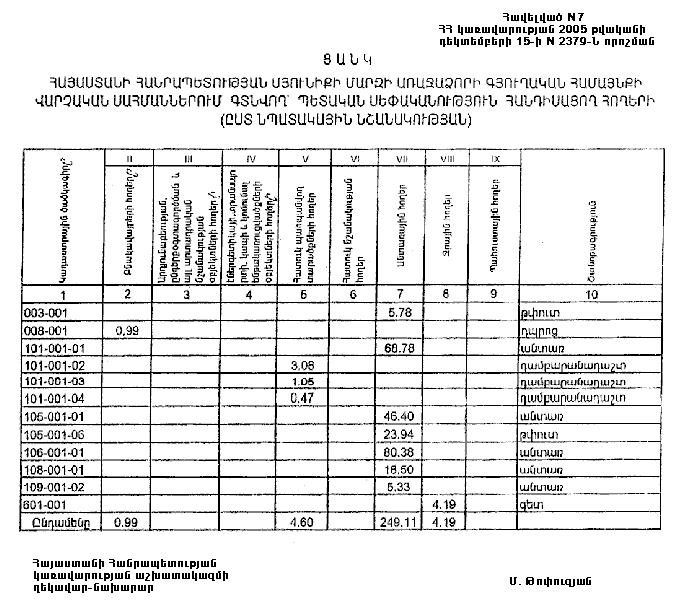 ՀԱՅԱՍՏԱՆԻ ՀԱՆՐԱՊԵՏՈՒԹՅԱՆ ՍՅՈՒՆԻՔԻ ՄԱՐԶԻ ԱՌԱՋԱՁՈՐԻ ԳՅՈՒՂԱԿԱՆ ՀԱՄԱՅՆՔԻ ՎԱՐՉԱԿԱՆ ՍԱՀՄԱՆՆԵՐՈՒՄ ԳՏՆՎՈՂ` ՊԵՏԱԿԱՆ ՍԵՓԱԿԱՆՈՒԹՅՈՒՆ ՀԱՆԴԻՍԱՑՈՂ ՀՈՂԵՐԻՑ ԱՌԱՋԱՁՈՐԻ ԳՅՈՒՂԱԿԱՆ ՀԱՄԱՅՆՔԻՆ ԱՆՀԱՏՈՒՅՑ ՓՈԽԱՆՑՎՈՂ ՀՈՂԵՐԻ (ԸՍՏ ՆՊԱՏԱԿԱՅԻՆ ՆՇԱՆԱԿՈՒԹՅԱՆ)