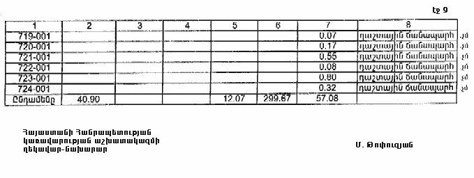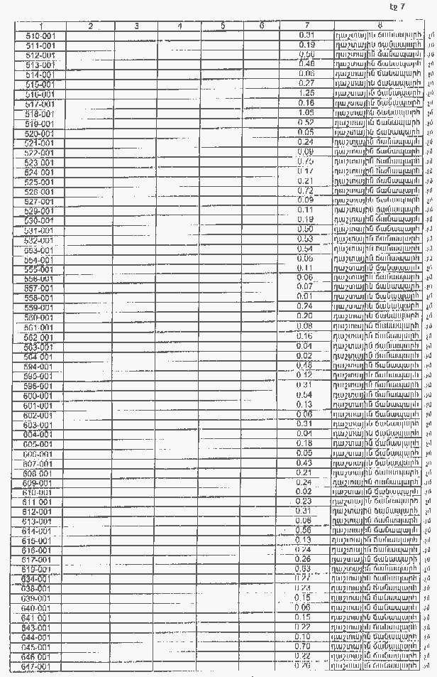 7. Հայաստանի Հանրապետության Տավուշի մարզպետին` Հայաստանի Հանրապետության կառավարության 2000 թվականի հոկտեմբերի 23-ի N 656 որոշմամբ սահմանված կարգով` սկզբնական հաշվառման տվյալների հիման վրա ապահովել մարզի տարածքում ընթացիկ հաշվառման աշխատանքների իրականացումը:
