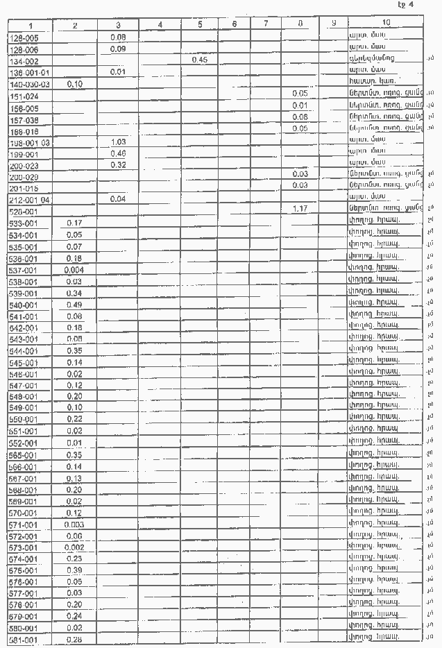 4. Ընդունել ի գիտություն Հայաստանի Հանրապետության Տավուշի մարզի Վարագավանի գյուղական համայնքի հողային ֆոնդի առկայության և բաշխման մասին հաշվետվությունը` 2005 թվականի հունվարի 1-ի դրությամբ` համաձայն NN 8 և 9 հավելվածների: