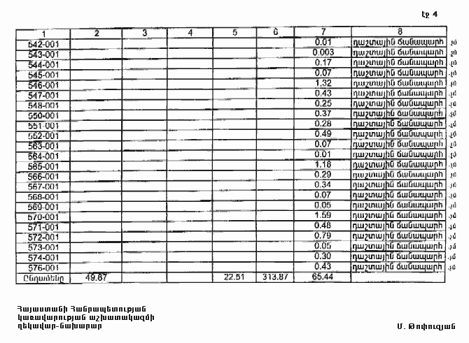 4. Ընդունել ի գիտություն Հայաստանի Հանրապետության Լոռու մարզի Ամրակցի գյուղական համայնքի հողային ֆոնդի առկայության և բաշխման մասին հաշվետվությունը` 2005 թվականի հունվարի 1-ի դրությամբ` համաձայն NN 8 և 9 հավելվածների: