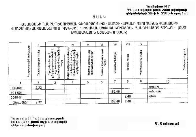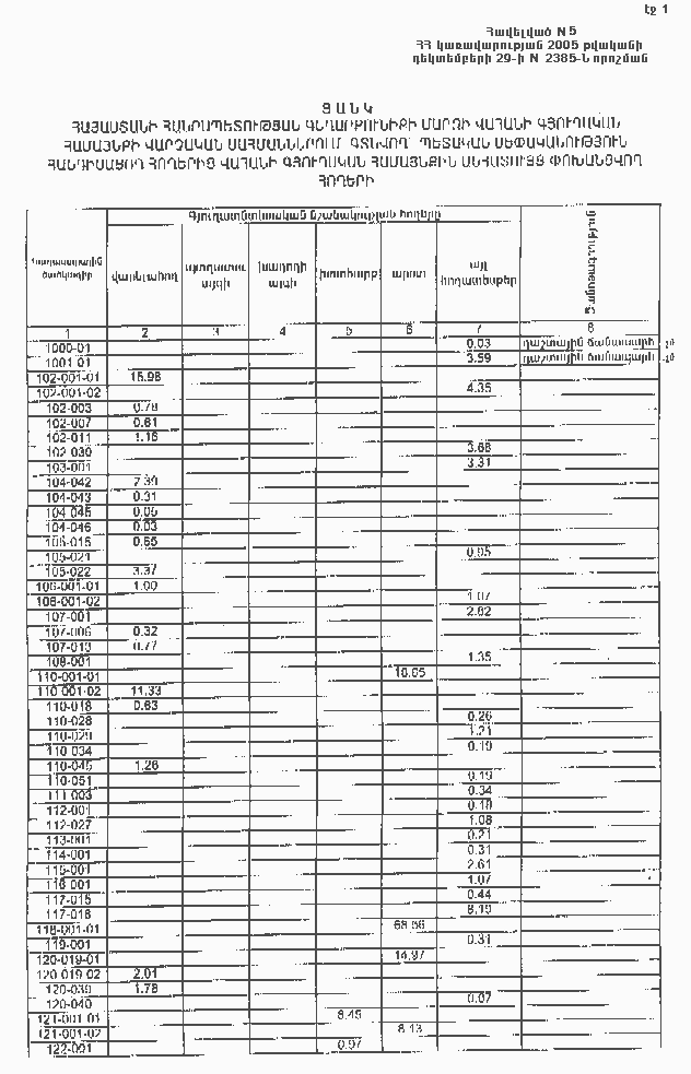 29 դեկտեմբերի 2005 թվականի N 2385-Ն