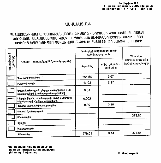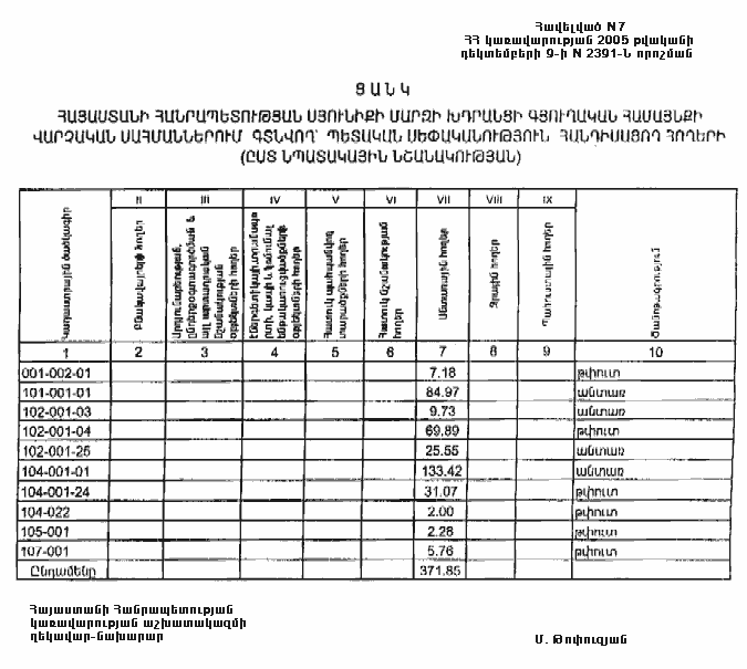 9 դեկտեմբերի 2005 թվականի N 2391-Ն
