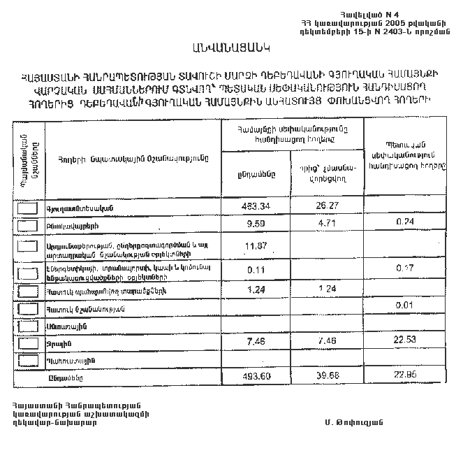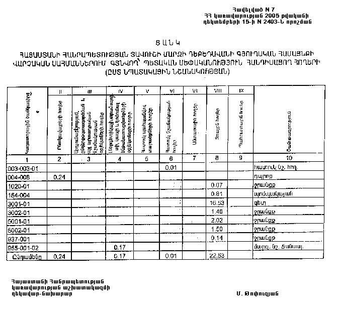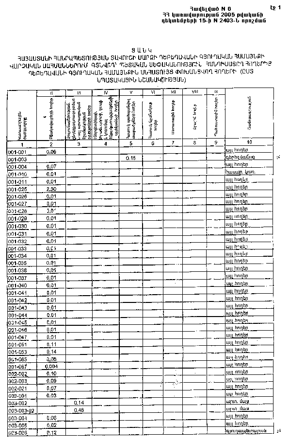 15 դեկտեմբերի 2005 թվականի N 2403-Ն