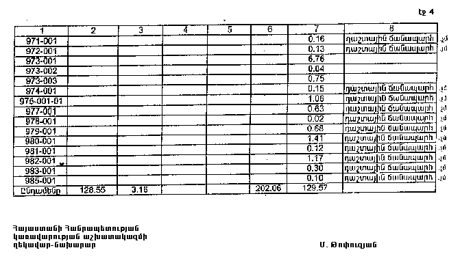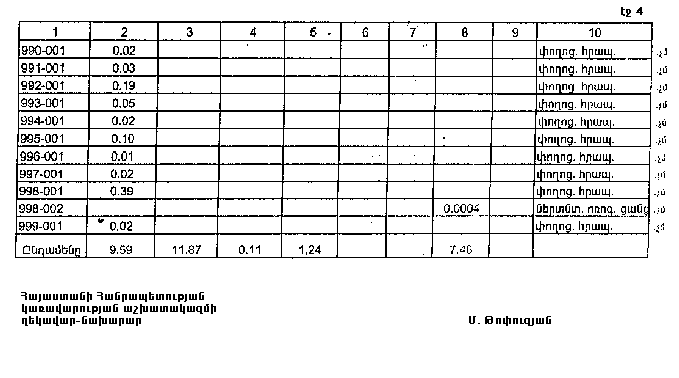 4. Ընդունել ի գիտություն Հայաստանի Հանրապետության Տավուշի մարզի Դեբեդավանի գյուղական համայնքի հողային ֆոնդի առկայության և բաշխման մասին հաշվետվությունը` 2005 թվականի հունվարի 1-ի դրությամբ` համաձայն NN 8 և 9 հավելվածների: