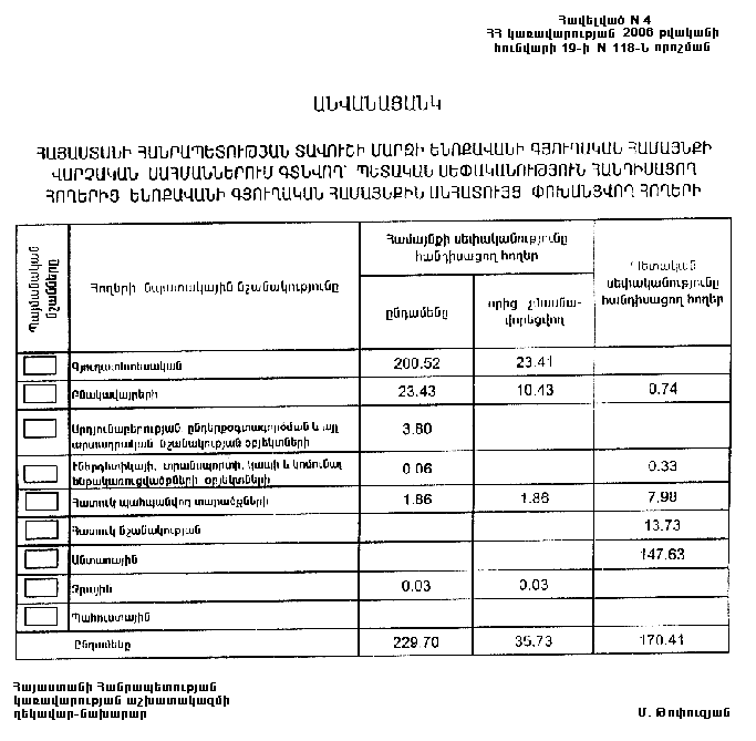 ա) Հայաստանի Հանրապետության Տավուշի մարզի Ենոքավանի գյուղական համայնքին անհատույց սեփականության իրավունքով փոխանցվող 229.7 հեկտար հողերից 35.73 հեկտարը մասնավորեցման ենթակա չէ.