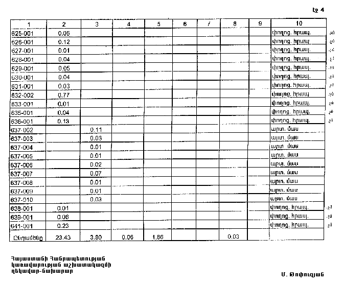 4. Ընդունել ի գիտություն Հայաստանի Հանրապետության Տավուշի մարզի Ենոքավանի գյուղական համայնքի հողային ֆոնդի առկայության և բաշխման մասին հաշվետվությունը՝ 2005 թվականի հունվարի 1-ի դրությամբ՝ համաձայն N 8 հավելվածի: