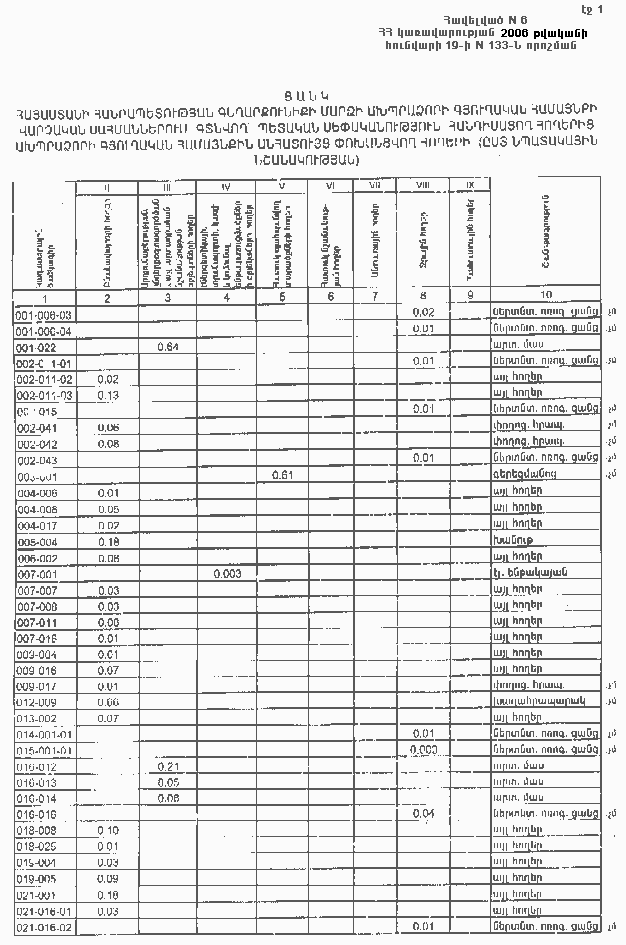 19 հունվարի 2006 թվականի N 133-Ն