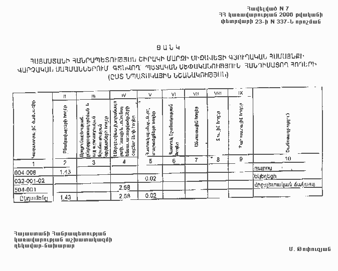 7. Հայաստանի Հանրապետության Շիրակի մարզպետին` Հայաստանի Հանրապետության կառավարության 2000 թվականի հոկտեմբերի 23-ի N 656 որոշմամբ սահմանված կարգով` սկզբնական հաշվառման տվյալների հիման վրա ապահովել մարզի տարածքում ընթացիկ հաշվառման աշխատանքների իրականացումը: