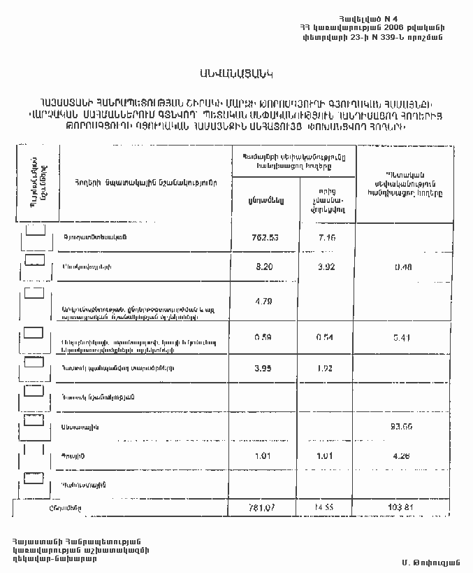 4. Ընդունել ի գիտություն Հայաստանի Հանրապետության Շիրակի մարզի Թորոսգյուղի գյուղական համայնքի հողային ֆոնդի առկայության և բաշխման մասին հաշվետվությունը` 2005 թվականի հունվարի 1-ի դրությամբ` համաձայն N 8 հավելվածի: