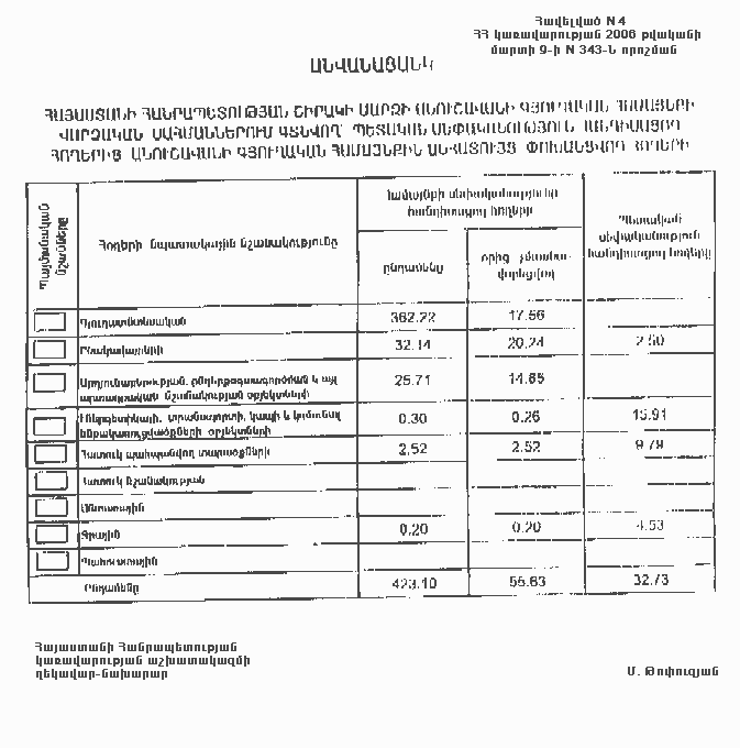 4. Ընդունել ի գիտություն Հայաստանի Հանրապետության Շիրակի մարզի Անուշավանի գյուղական համայնքի հողային ֆոնդի առկայության և բաշխման մասին հաշվետվությունը` 2005 թվականի հունվարի 1-ի դրությամբ` համաձայն NN 8 և 9 հավելվածների: