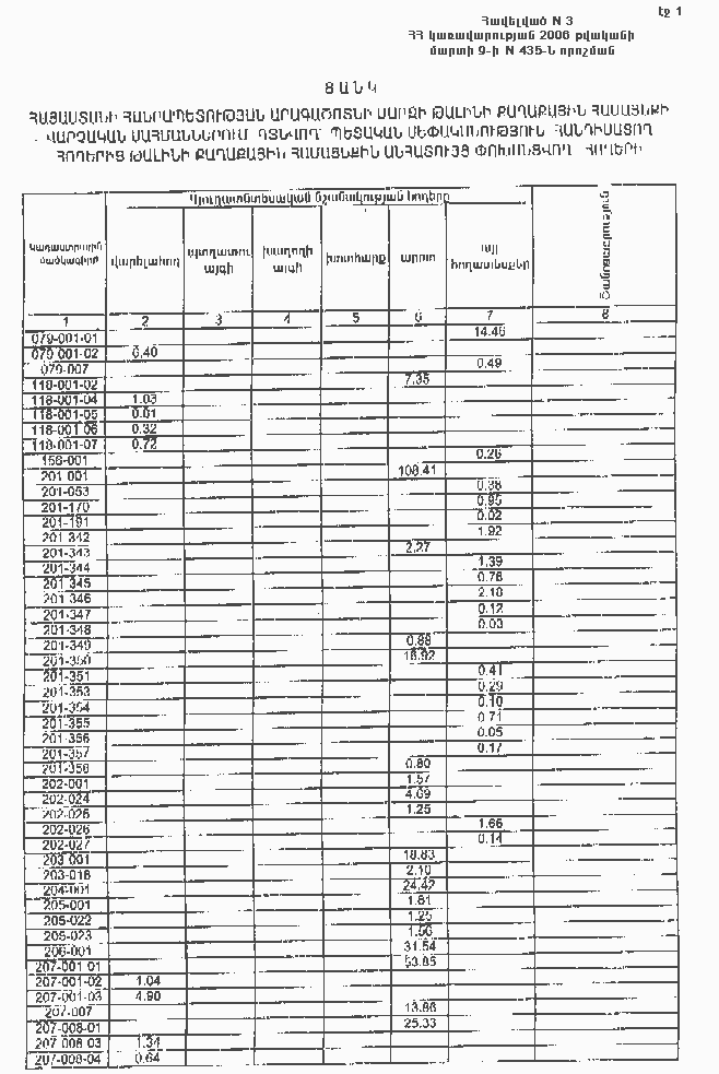 3. Ընդունել ի գիտություն Հայաստանի Հանրապետության Արագածոտնի մարզի Թալինի քաղաքային համայնքի հողային ֆոնդի առկայության և բաշխման մասին հաշվետվությունը՝ 2005 թվականի հունվարի 1-ի դրությամբ՝ համաձայն NN 6 և 7 հավելվածների: