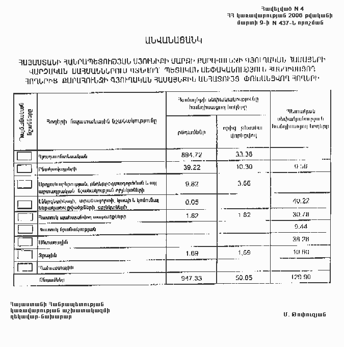 4. Ընդունել ի գիտություն Հայաստանի Հանրապետության Սյունիքի մարզի Քարահունջի գյուղական համայնքի հողային ֆոնդի առկայության և բաշխման մասին հաշվետվությունը` 2005 թվականի հունվարի 1-ի դրությամբ` համաձայն NN 8 և 9 հավելվածների: