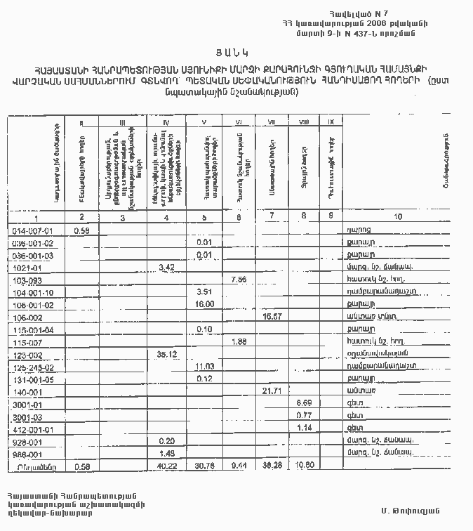 7. Հայաստանի Հանրապետության Սյունիքի մարզպետին` Հայաստանի Հանրապետության կառավարության 2000 թվականի հոկտեմբերի 23-ի N 656 որոշմամբ սահմանված կարգով` սկզբնական հաշվառման տվյալների հիման վրա ապահովել մարզի տարածքում ընթացիկ հաշվառման աշխատանքների իրականացումը: