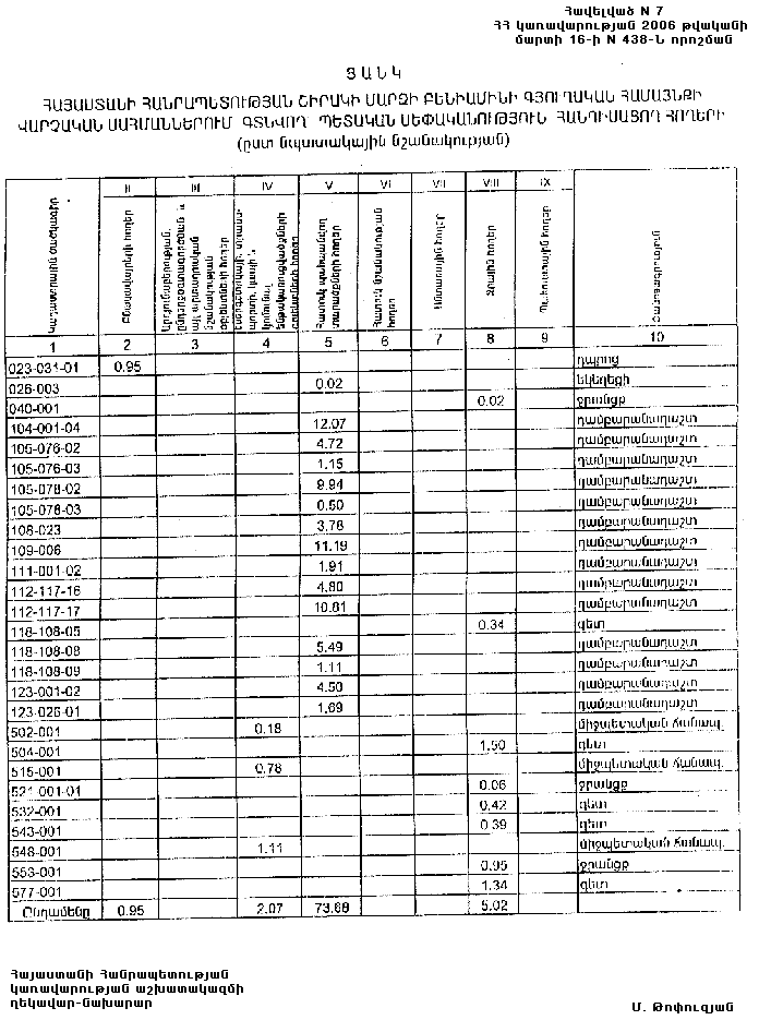 7. Հայաստանի Հանրապետության Շիրակի մարզպետին` Հայաստանի Հանրապետության կառավարության 2000 թվականի հոկտեմբերի 23-ի N 656 որոշմամբ սահմանված կարգով` սկզբնական հաշվառման տվյալների հիման վրա ապահովել մարզի տարածքում ընթացիկ հաշվառման աշխատանքների իրականացումը: