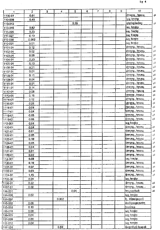 4. Ընդունել ի գիտություն Հայաստանի Հանրապետության Սյունիքի մարզի Լեռնաձորի գյուղական համայնքի հողային ֆոնդի առկայության և բաշխման մասին հաշվետվությունը` 2005 թվականի հունվարի 1-ի դրությամբ` համաձայն NN 8 և 9 հավելվածների: