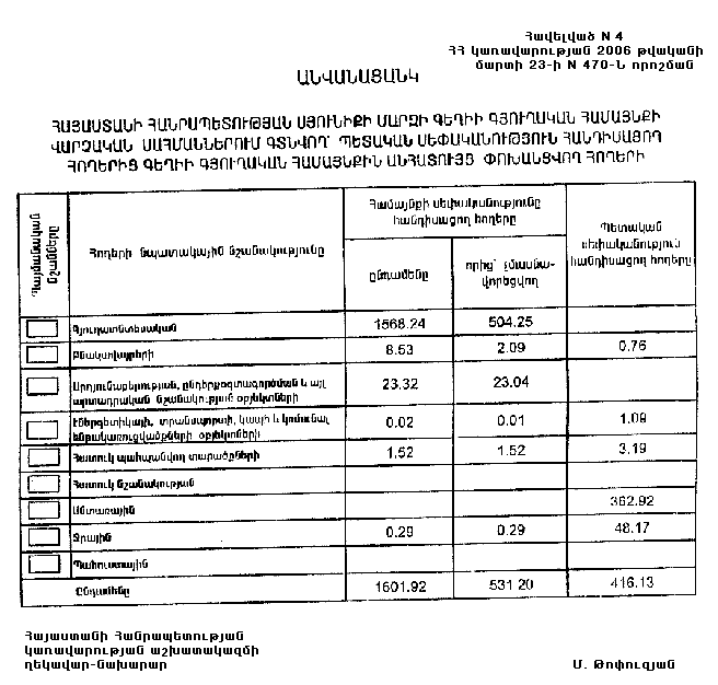 4. Ընդունել ի գիտություն Հայաստանի Հանրապետության Սյունիքի մարզի Գեղիի գյուղական համայնքի հողային ֆոնդի առկայության և բաշխման մասին հաշվետվությունը` 2005 թվականի հունվարի 1-ի դրությամբ` համաձայն NN 8 և 9 հավելվածների: