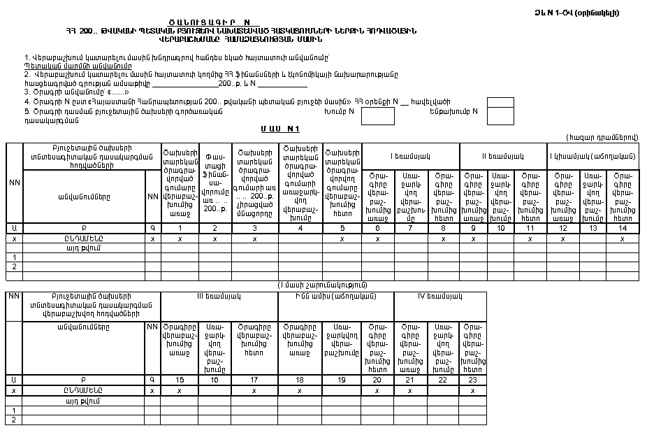 ՀՀ 200.. ԹՎԱԿԱՆԻ ՊԵՏԱԿԱՆ ԲՅՈՒՋԵՈՎ ՀԱՍՏԱՏՎԱԾ ՊԵՏՈՒԹՅԱՆ ԿԱՐԻՔՆԵՐԻ ՀԱՄԱՐ ԳՆՈՒՄՆԵՐԻ ԱՆՎԱՆԱՑԱՆԿՈՒՄ ՓՈՓՈԽՈՒԹՅՈՒՆՆԵՐԻ ԵՎ/ԿԱՄ ԼՐԱՑՈՒՄՆԵՐԻ ՄԱՍԻՆ
