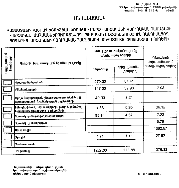 6 ապրիլի 2006 թվականի N 516-Ն