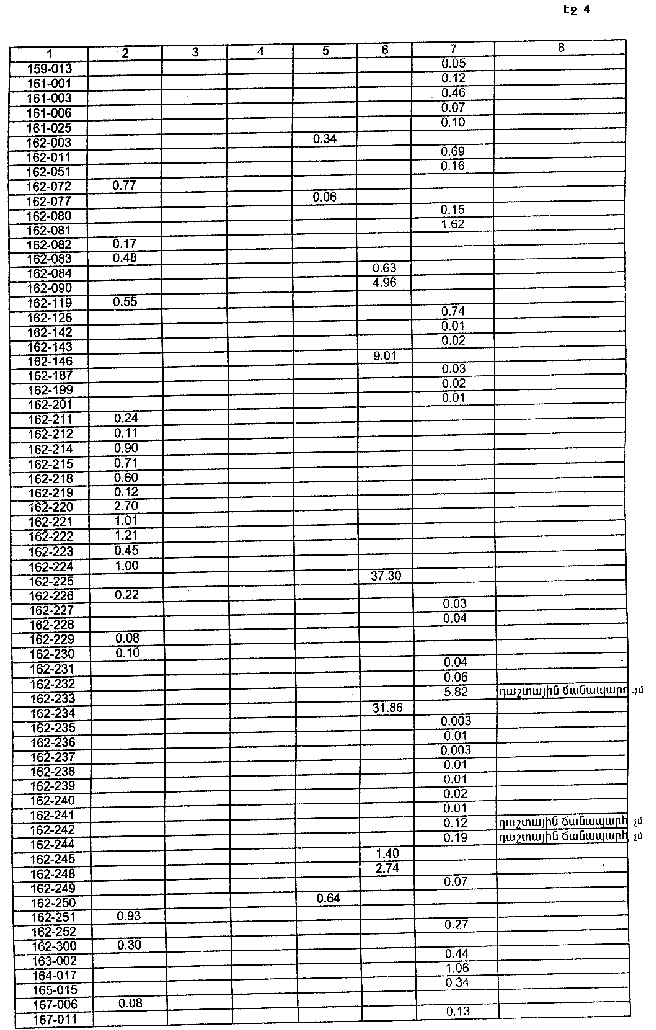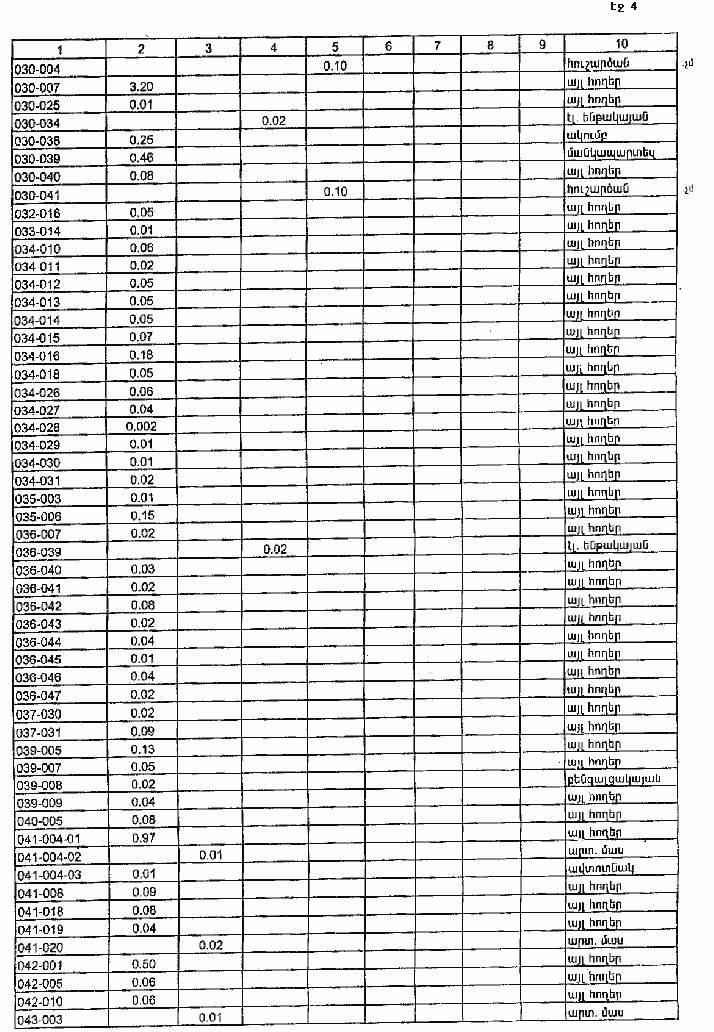 4. Ընդունել ի գիտություն Հայաստանի Հանրապետության Կոտայքի մարզի Արզականի գյուղական համայնքի հողային ֆոնդի առկայության և բաշխման մասին հաշվետվությունը` 2005 թվականի հունվարի 1-ի դրությամբ` համաձայն NN 8 և 9 հավելվածների: