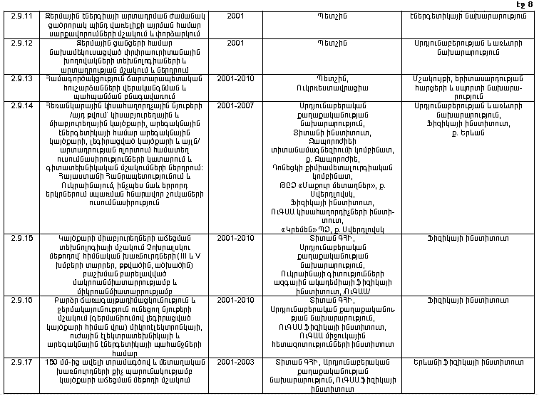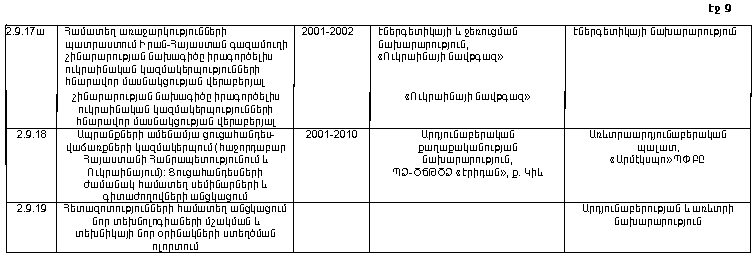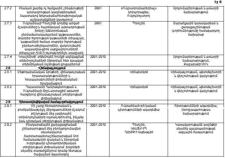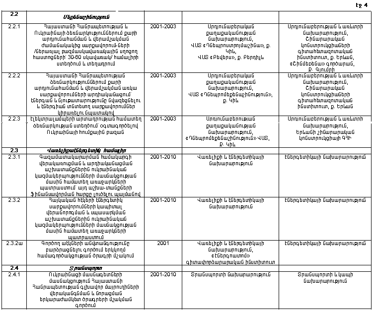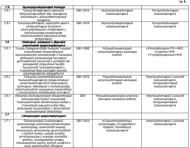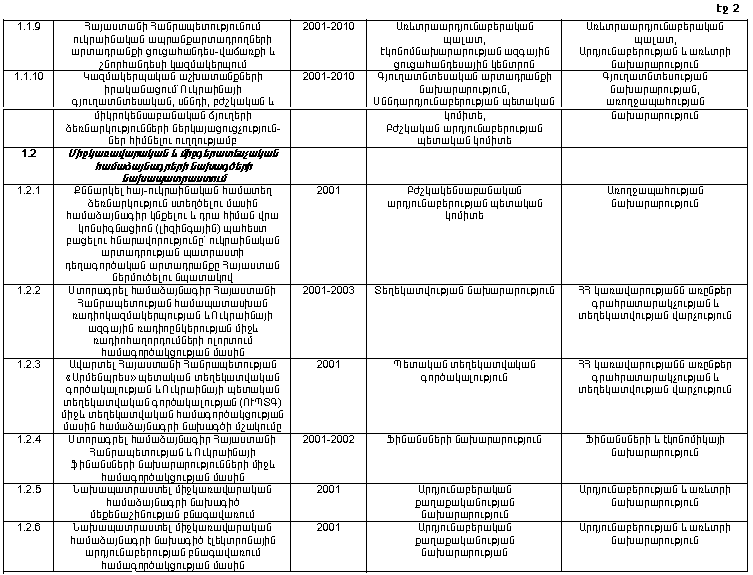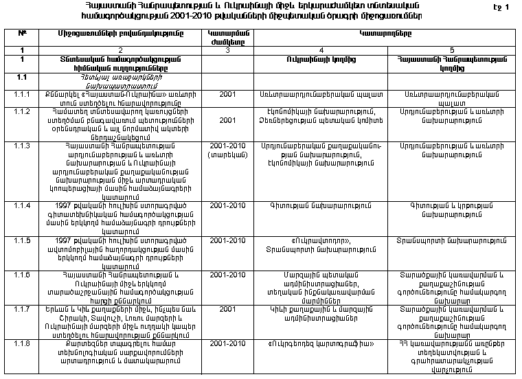 Հայաստանի Հանրապետության և Ուկրաինայի միջև երկարաժամկետ տնտեսական համագործակցության 2001-2010 թվականների միջպետական ծրագրի միջոցառումներ |