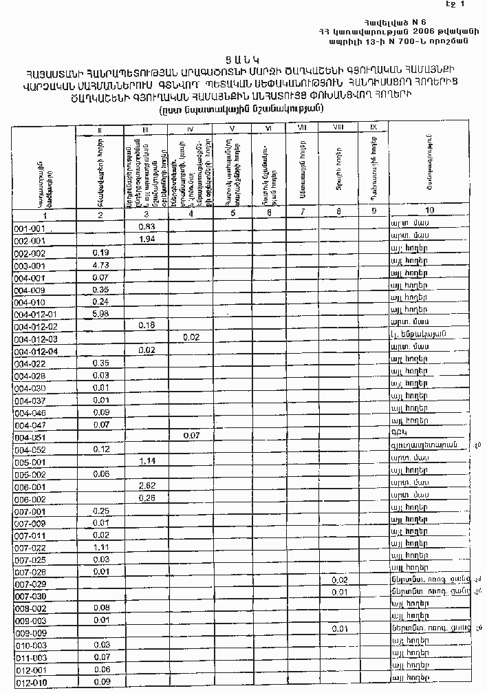 6. Թույլատրել Հայաստանի Հանրապետության կառավարությանն առընթեր անշարժ գույքի կադաստրի պետական կոմիտեի նախագահին Հայաստանի Հանրապետության պետական գեոդեզիական ցանցի հավասարակշռման արդյունքների հիման վրա Հայաստանի Հանրապետության վարչատարածքային միավորների սահմանանիշերի կոորդինատների ժողովածուի հրատարակումից հետո հողային ֆոնդի ընթացիկ հաշվառման ժամանակ Հայաստանի Հանրապետության Արագածոտնի մարզի Ծաղկաշենի գյուղական համայնքի հողային հաշվեկշռում սահմանված կարգով կատարել համապատասխան փոփոխություններ: