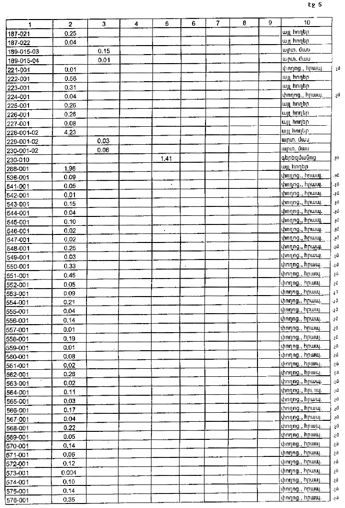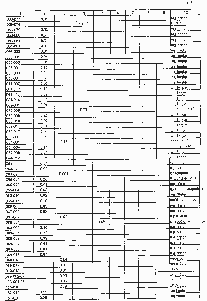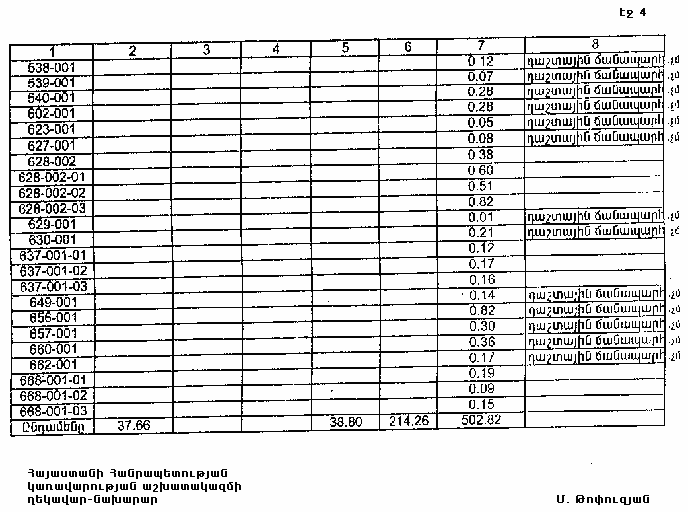 4. Ընդունել ի գիտություն Հայաստանի Հանրապետության Տավուշի մարզի Ոսկեվանի գյուղական համայնքի հողային ֆոնդի առկայության և բաշխման մասին հաշվետվությունը՝ 2005 թվականի հունվարի 1-ի դրությամբ՝ համաձայն NN 8 և 9 հավելվածների: