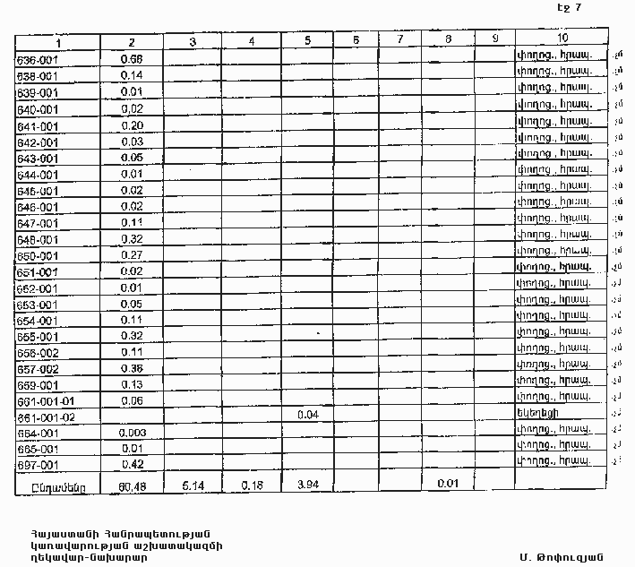 7. Հայաստանի Հանրապետության Տավուշի մարզպետին՝ Հայաստանի Հանրապետության կառավարության 2000 թվականի հոկտեմբերի 23-ի N 656 որոշմամբ սահմանված կարգով՝ սկզբնական հաշվառման տվյալների հիման վրա ապահովել մարզի տարածքում ընթացիկ հաշվառման աշխատանքների իրականացումը: