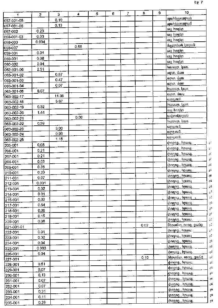 7. Հայաստանի Հանրապետության Սյունիքի մարզպետին` Հայաստանի Հանրապետության կառավարության 2000 թվականի հոկտեմբերի 23-ի N 656 որոշմամբ սահմանված կարգով` սկզբնական հաշվառման տվյալների հիման վրա ապահովել մարզի տարածքում ընթացիկ հաշվառման աշխատանքների իրականացումը: