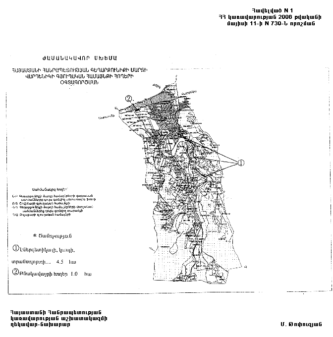 1. Հայաստանի Հանրապետության կառավարության 2002 թվականի օգոստոսի 29-ի N 1345-Ն որոշմամբ հաստատված` Հայաստանի Հանրապետության Գեղարքունիքի մարզի Վարդենիկի գյուղական համայնքի հողերի օգտագործման ժամանակավոր սխեմայում` համաձայն NN 1, 2 և 3 հավելվածների, համայնքային սեփականություն հանդիսացող գյուղատնտեսական նշանակության հողերից փոխադրել`