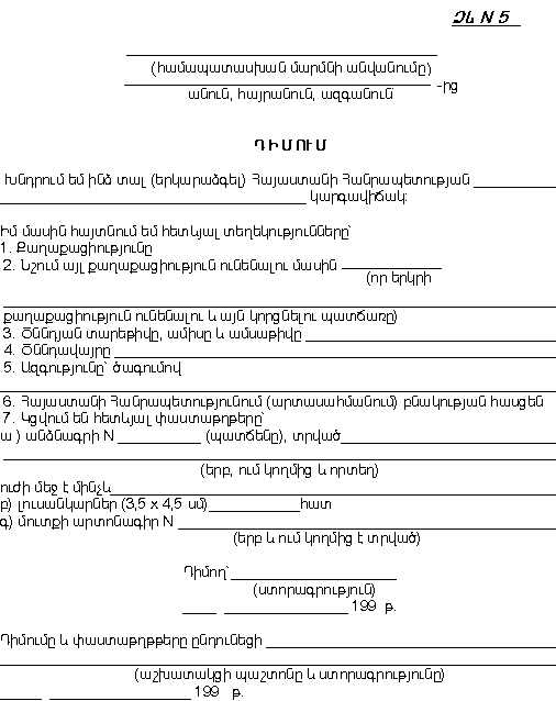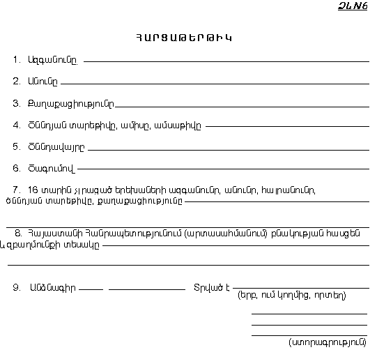բ) հարցաթերթիկ ( N 6 ձևը կցվում է).