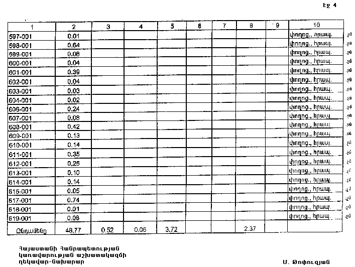 4. Ընդունել ի գիտություն Հայաստանի Հանրապետության Կոտայքի մարզի Ողջաբերդի գյուղական համայնքի հողային ֆոնդի առկայության և բաշխման մասին հաշվետվությունը` 2005 թվականի հունվարի 1-ի դրությամբ` համաձայն NN 8 և 9 հավելվածների: