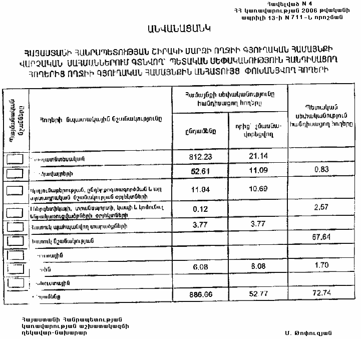 ա) Հայաստանի Հանրապետության Շիրակի մարզի Ողջիի գյուղական համայնքին անհատույց սեփականության իրավունքով փոխանցվող 886.66 հեկտար հողերից 52.77 հեկտարը մասնավորեցման ենթակա չէ.