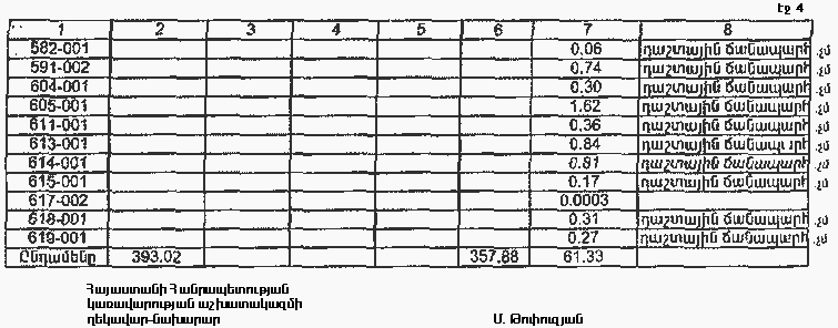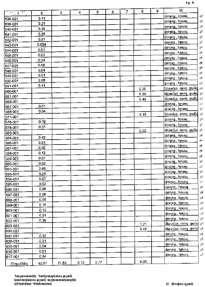 4. Ընդունել ի գիտություն Հայաստանի Հանրապետության Շիրակի մարզի Ողջիի գյուղական համայնքի հողային ֆոնդի առկայության և բաշխման մասին հաշվետվությունը` 2005 թվականի հունվարի 1-ի դրությամբ` համաձայն NN 8 և 9 հավելվածների: