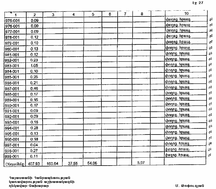 7. Հայաստանի Հանրապետության Արմավիրի մարզպետին՝ Հայաստանի Հանրապետության կառավարության 2000 թվականի հոկտեմբերի 23-ի N 656 որոշմամբ սահմանված կարգով՝ սկզբնական հաշվառման տվյալների հիման վրա ապահովել մարզի տարածքում ընթացիկ հաշվառման աշխատանքների իրականացումը: