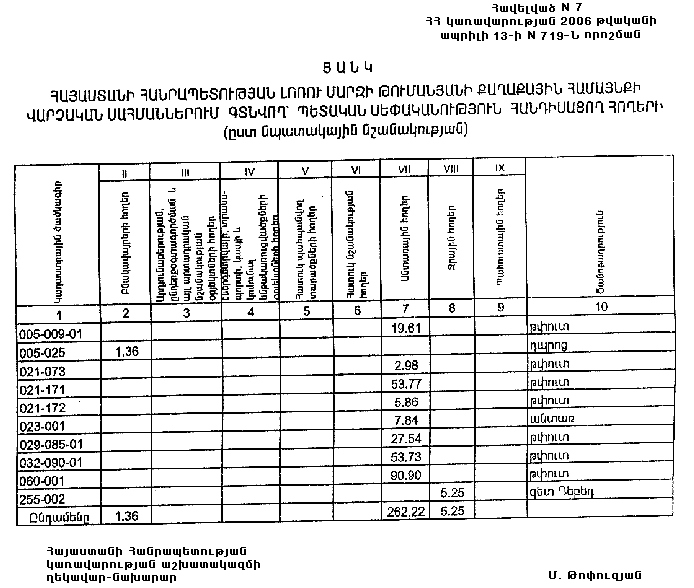 ՀԱՅԱՍՏԱՆԻ ՀԱՆՐԱՊԵՏՈՒԹՅԱՆ ԼՈՌՈՒ ՄԱՐԶԻ ԹՈՒՄԱՆՅԱՆԻ ՔԱՂԱՔԱՅԻՆ ՀԱՄԱՅՆՔԻ ՎԱՐՉԱԿԱՆ ՍԱՀՄԱՆՆԵՐՈՒՄ ԳՏՆՎՈՂ` ՊԵՏԱԿԱՆ ՍԵՓԱԿԱՆՈՒԹՅՈՒՆ ՀԱՆԴԻՍԱՑՈՂ ՀՈՂԵՐԻ