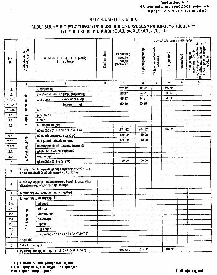 3. Ընդունել ի գիտություն Հայաստանի Հանրապետության Արարատի մարզի Արտաշատի քաղաքային համայնքի հողային ֆոնդի առկայության և բաշխման մասին հաշվետվությունը` 2005 թվականի հունվարի 1-ի դրությամբ` համաձայն NN 6 և 7 հավելվածների: