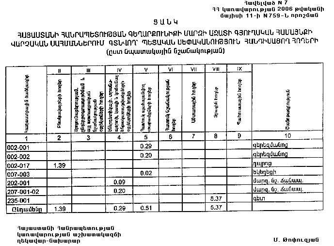 7. Հայաստանի Հանրապետության Գեղարքունիքի մարզպետին` Հայաստանի Հանրապետության կառավարության 2000 թվականի հոկտեմբերի 23-ի N 656 որոշմամբ սահմանված կարգով` սկզբնական հաշվառման տվյալների հիման վրա ապահովել մարզի տարածքում ընթացիկ հաշվառման աշխատանքների իրականացումը: