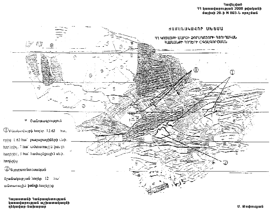 1. Հայաստանի Հանրապետության կառավարության 2002 թվականի հուլիսի 18-ի N 1027-Ն որոշմամբ հաստատված Հայաստանի Հանրապետության Կոտայքի մարզի Ձորաղբյուրի գյուղական համայնքի հողերի օգտագործման ժամանակավոր սխեմայում` համաձայն հավելվածի, պետական սեփականություն հանդիսացող գյուղատնտեսական նշանակության 5,0 հեկտար վարելահողերը փոխադրել բնակավայրերի հողերի կատեգորիա` բնակելի կառուցապատման համար, և քաղաքացիների սեփականությունը հանդիսացող գյուղատնտեսական նշանակության 1,63 հեկտար վարելահողերը` բնակավայրերի հողերի կատեգորիա` հասարակական կառուցապատման համար:
