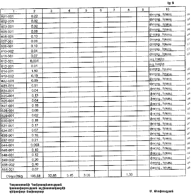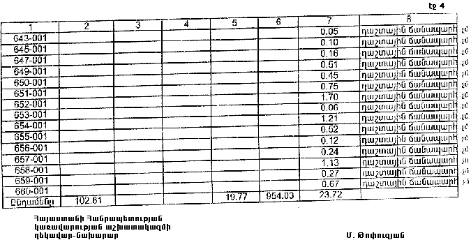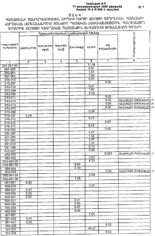 4. Ընդունել ի գիտություն Հայաստանի Հանրապետության Շիրակի մարզի Աշոցքի գյուղական համայնքի հողային ֆոնդի առկայության և բաշխման մասին հաշվետվությունը` 2005 թվականի հունվարի 1-ի դրությամբ` համաձայն N 8 հավելվածի: