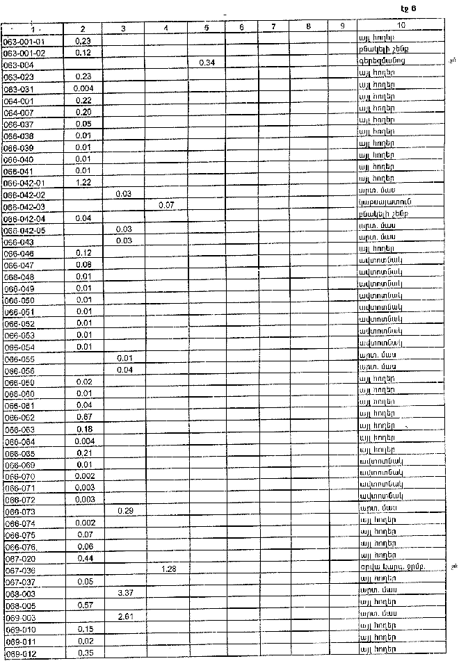 6. Թույլատրել Հայաստանի Հանրապետության կառավարությանն առընթեր անշարժ գույքի կադաստրի պետական կոմիտեի նախագահին Հայաստանի Հանրապետության պետական գեոդեզիական ցանցի հավասարակշռման արդյունքների հիման վրա Հայաստանի Հանրապետության վարչատարածքային միավորների սահմանանիշերի կոորդինատների ժողովածուի հրատարակումից հետո հողային ֆոնդի ընթացիկ հաշվառման ժամանակ Հայաստանի Հանրապետության Շիրակի մարզի Աշոցքի գյուղական համայնքի հողային հաշվեկշռում սահմանված կարգով կատարել համապատասխան փոփոխություններ: