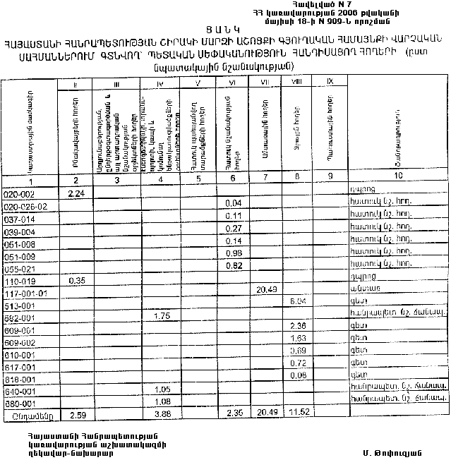 7. Հայաստանի Հանրապետության Շիրակի մարզպետին` Հայաստանի Հանրապետության կառավարության 2000 թվականի հոկտեմբերի 23-ի N 656 որոշմամբ սահմանված կարգով` սկզբնական հաշվառման տվյալների հիման վրա ապահովել մարզի տարածքում ընթացիկ հաշվառման աշխատանքների իրականացումը: