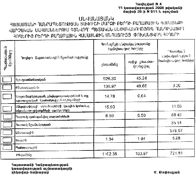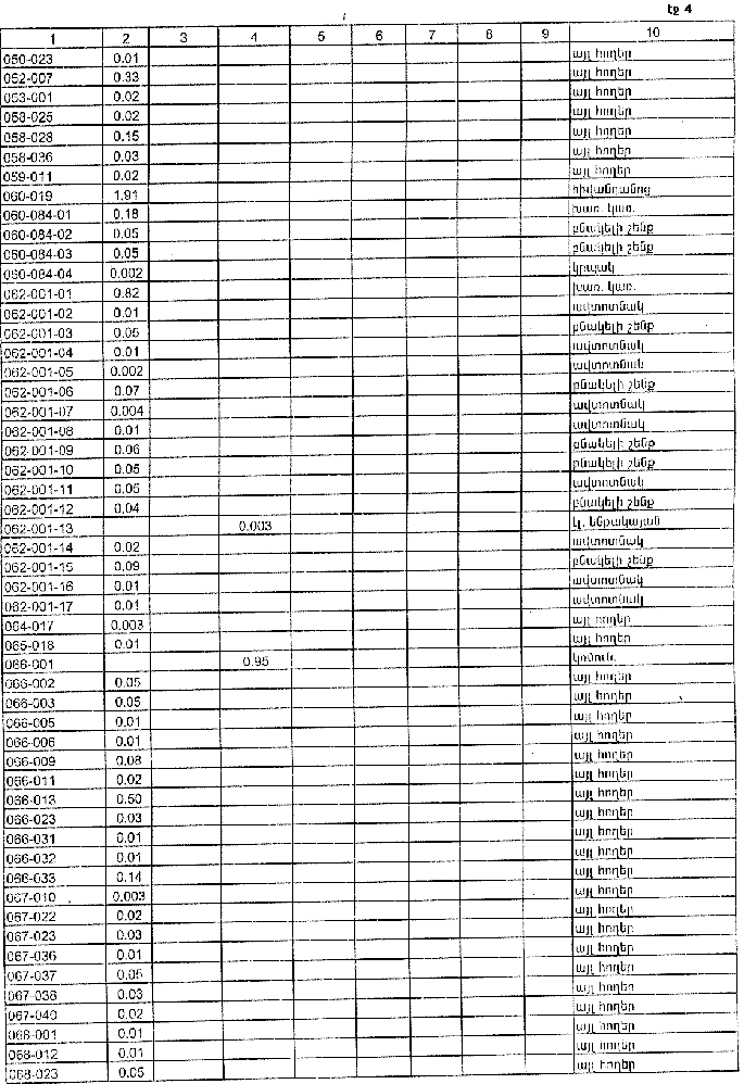 4. Ընդունել ի գիտություն Հայաստանի Հանրապետության Տավուշի մարզի Բերդի քաղաքային համայնքի հողային ֆոնդի առկայության և բաշխման մասին հաշվետվությունը՝ 2005 թվականի հունվարի 1-ի դրությամբ՝ համաձայն NN 8 և 9 հավելվածների: