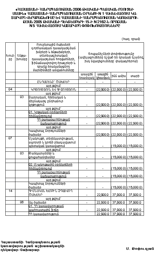 1) 2007 թվականի հունվար ամսվա ընթացքում Հայաստանի Հանրապետության կառավարությունը չի շարունակի 2006 թվականի բյուջետային տարվա պարտավորությունների գծով գործառնությունների ձևակերպումների իրականացումը.